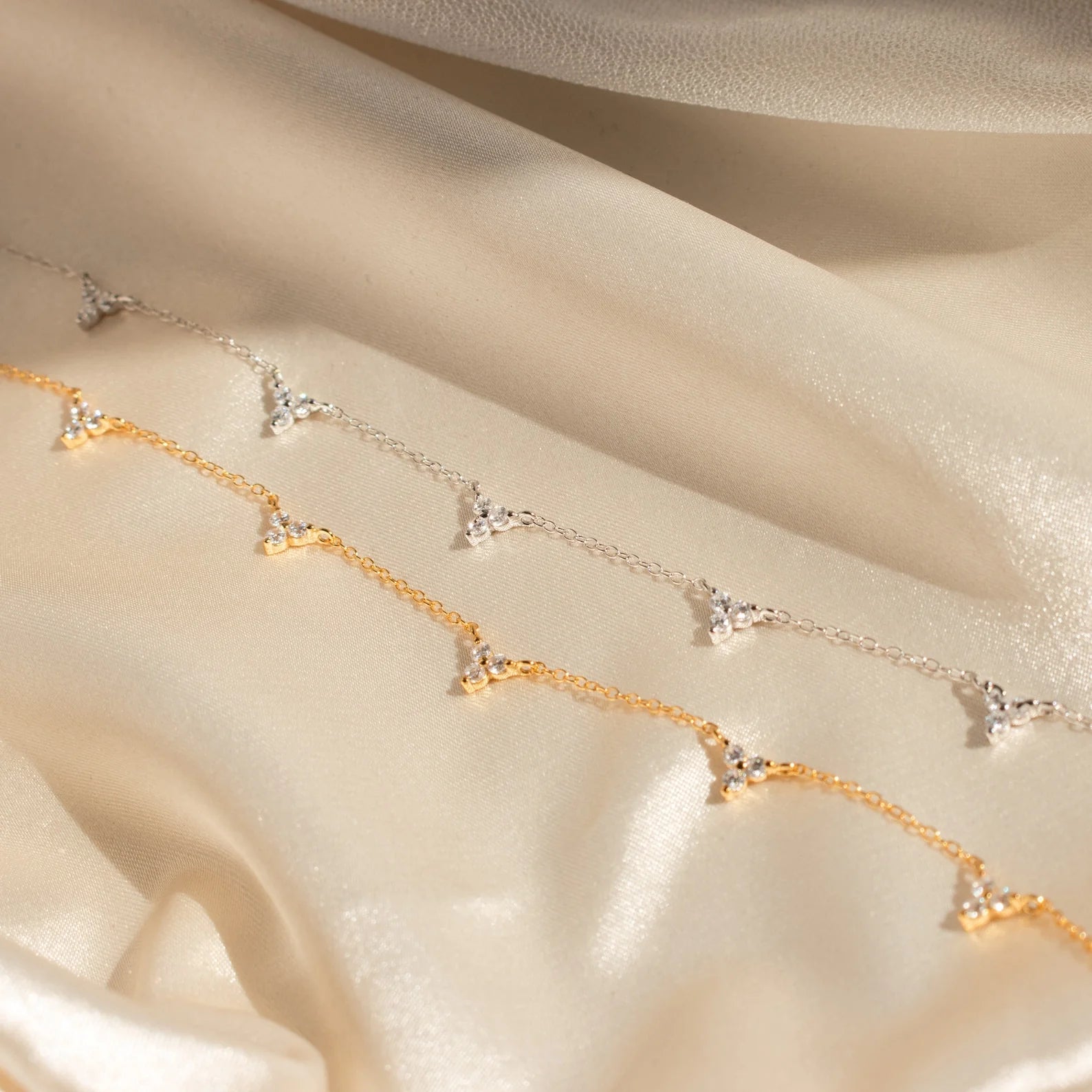 • Design: Features three diamond cluster charms on a delicate chain, adjustable from 14 to 16 inches