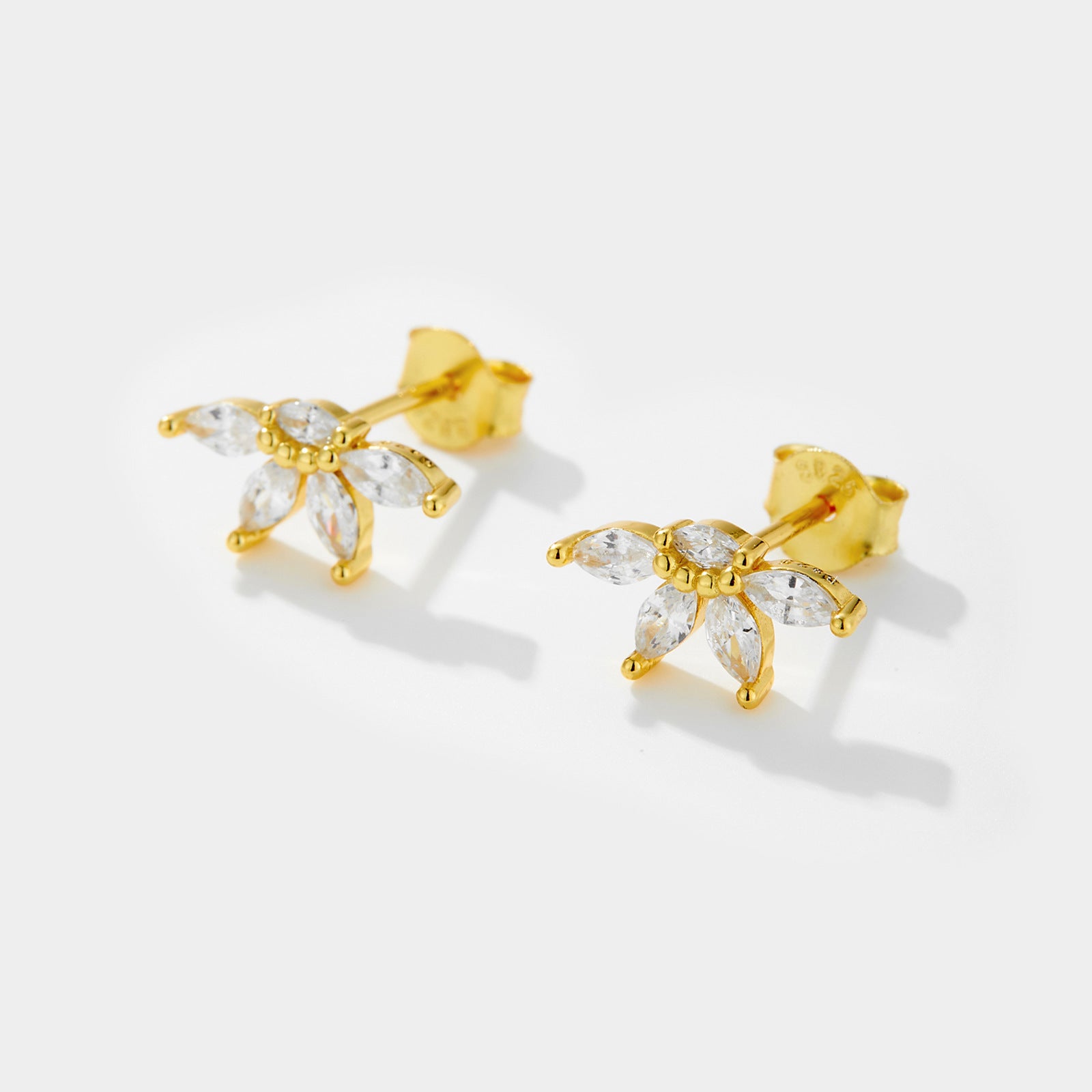 • Featuring: 10mm by 8mm High Quality CZ Diamond Petal Studs in Marquise Setting
