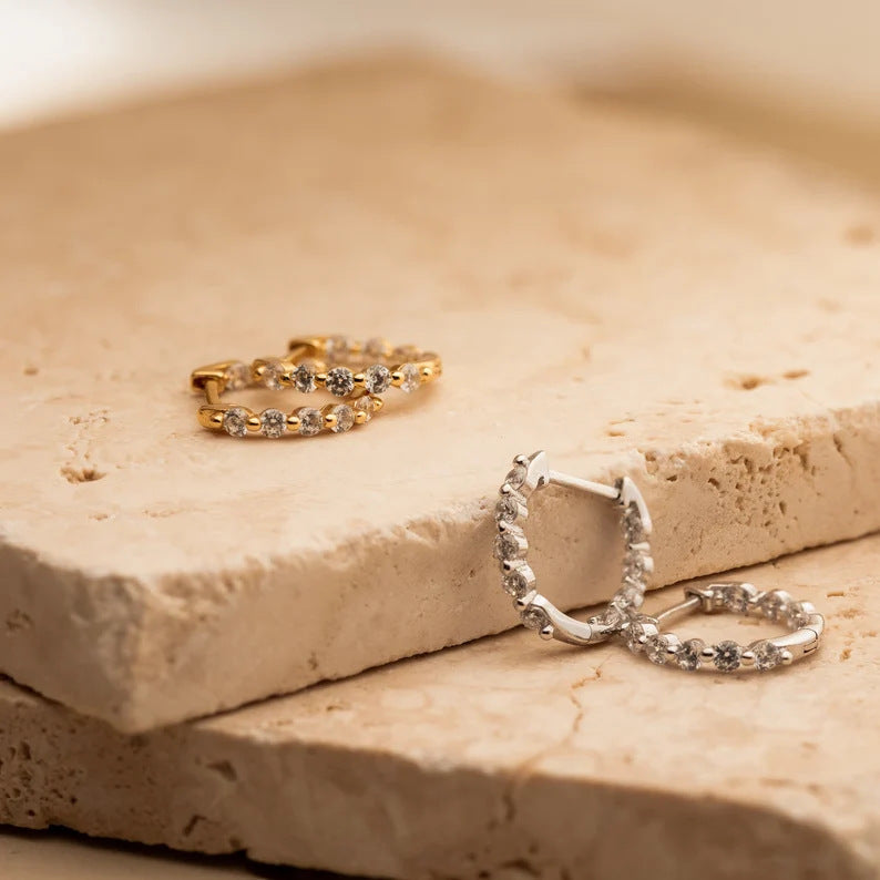 Bathed in golden light and adorned with shimmering crystals, our Starlit Circles earrings capture the quiet magic of a night sky filled with stars. Their inside-out design reflects a celestial brilliance from every angle, exuding both grace and allure. Whether illuminating an evening gown or adding a soft glow to your everyday look, Starlit Circles bring a timeless touch of romance and sophistication to any moment.