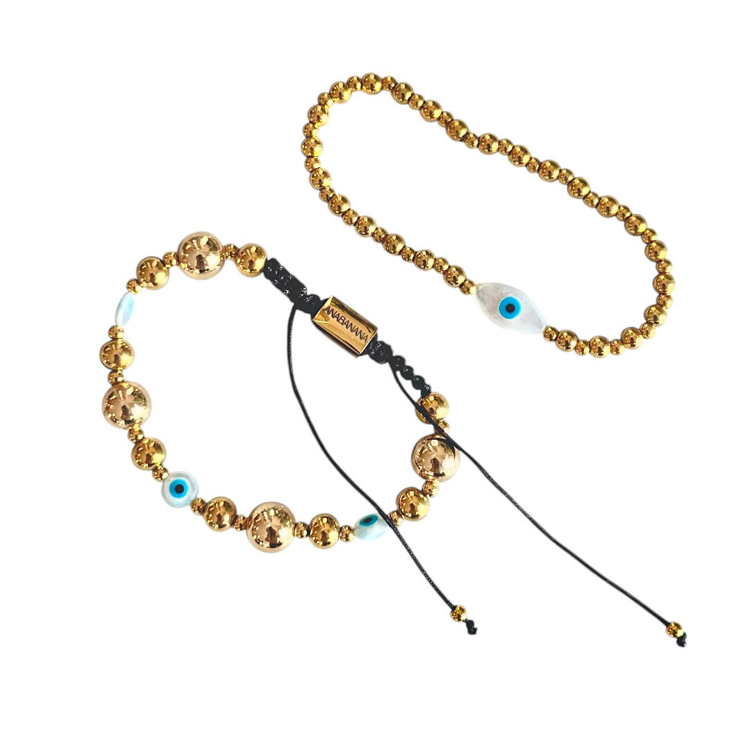 Delicately crafted with 14K gold-plated beads and accented with the signature blue eye detail, this set brings a perfect balance of elegance and modern minimalism.