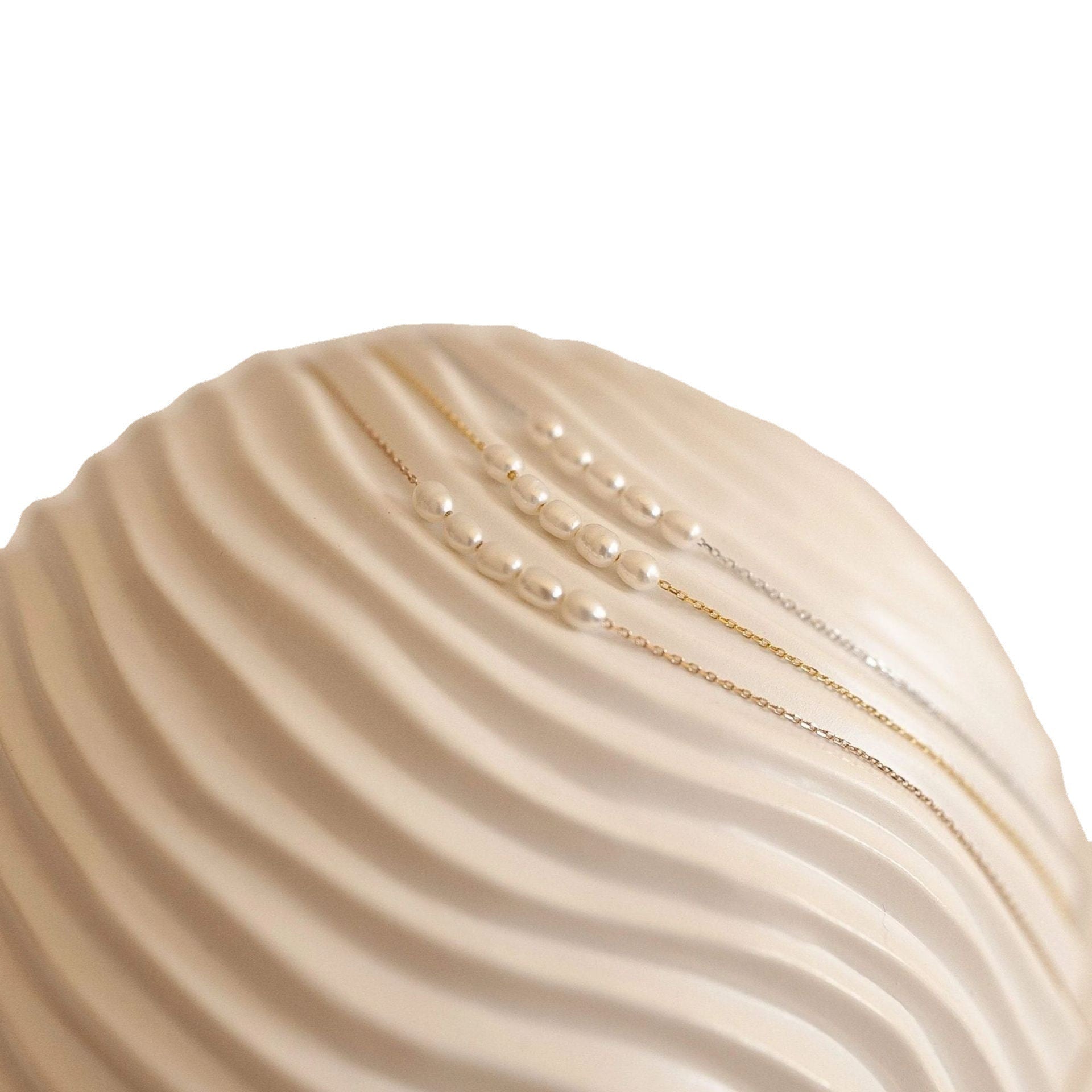 Beautiful, oval-shaped pearls are delicately strung along a fine gold chain, capturing the soft glow of moonlight over the sea. The Lunar Strand Necklace embodies timeless elegance and understated femininity, making it a graceful addition to any jewelry collection. Perfect for layering with other pieces or gifting to bridesmaids and mothers alike, it’s a radiant symbol of love and connection.