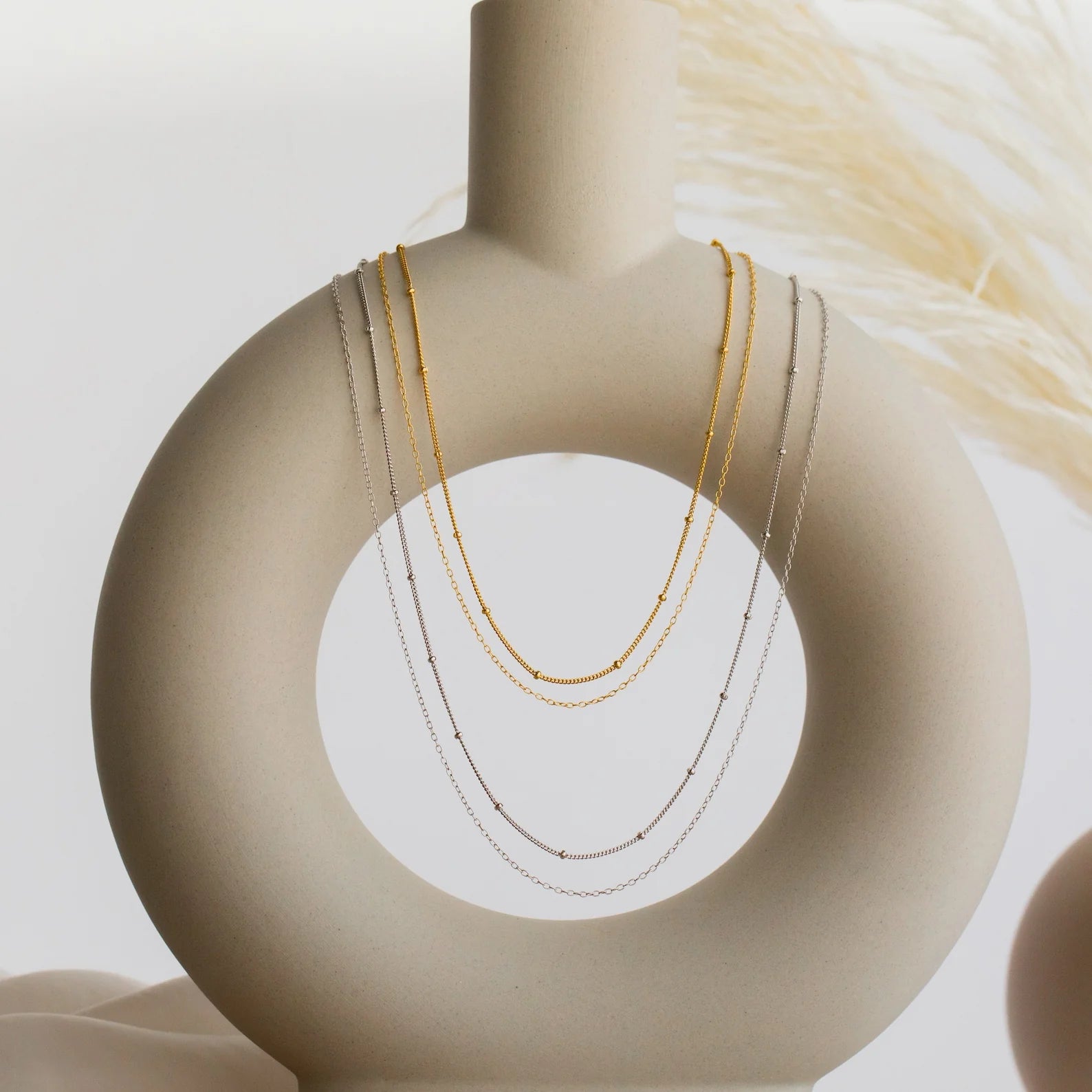 Find balance and beauty in simplicity with our Serene Duo Necklace. This minimalist layered piece combines a delicate satellite chain with a fine beaded chain, creating a subtle yet captivating look that enhances any neckline.